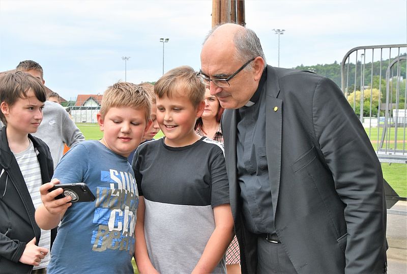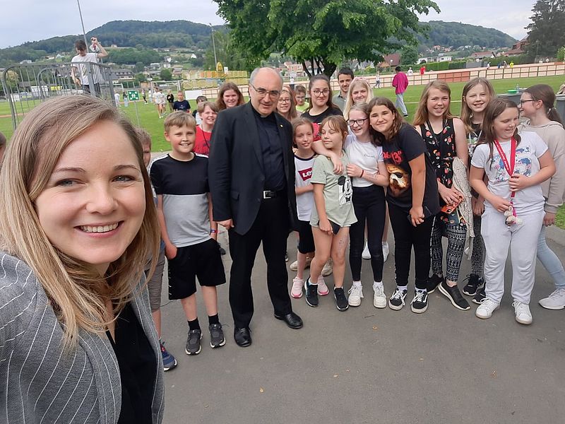 Zum Abschluss des Besuches wurden in der gemeinsamen Hofpause mit unserem Bischof noch viele Fotos und Selfies gemacht.