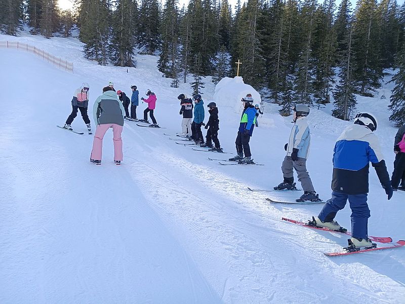 Vom 23. Bis 27. Jänner 2023 fand auf der Tauplitzalm in der Obersteiermark der Schikurs der 2. Klassen statt. Unser Ziel war der ÖAV Berggasthof Hollhaus, in welchem wir die Woche untergebracht waren. Jeder und jede Einzelne konnte das schifahrerische Können im Laufe der Tage steigern, obwohl es für manch einen das erste Mal auf zwei Brettern war. Die tiefwinterlichen Bedingungen mit Pulverschnee und Sonne machten das Erlernen und Verbessern der Schitechnik jedenfalls zum Genuss. An den Nachmittagen und Abenden stand noch Spiel und Spaß im Vordergrund. So galt es als Gruppe den besten Schneemann zu bauen, das Allgemeinwissen bestmöglich einzusetzen oder einen Tennisball ohne Hände schnellstmöglich weiterzureichen. Beim Abschlussrennen konnten alle noch einmal zeigen, was sie in dieser Woche gelernt hatten.