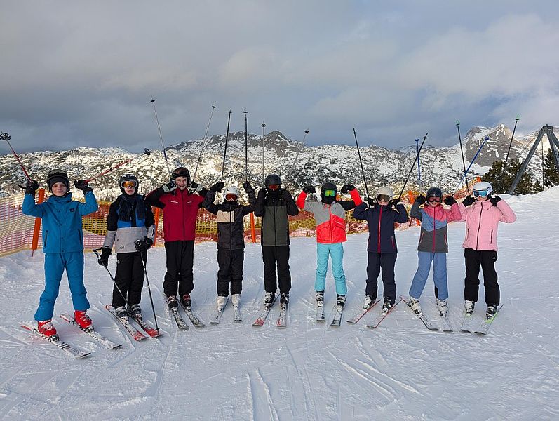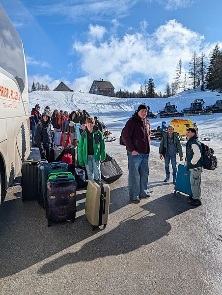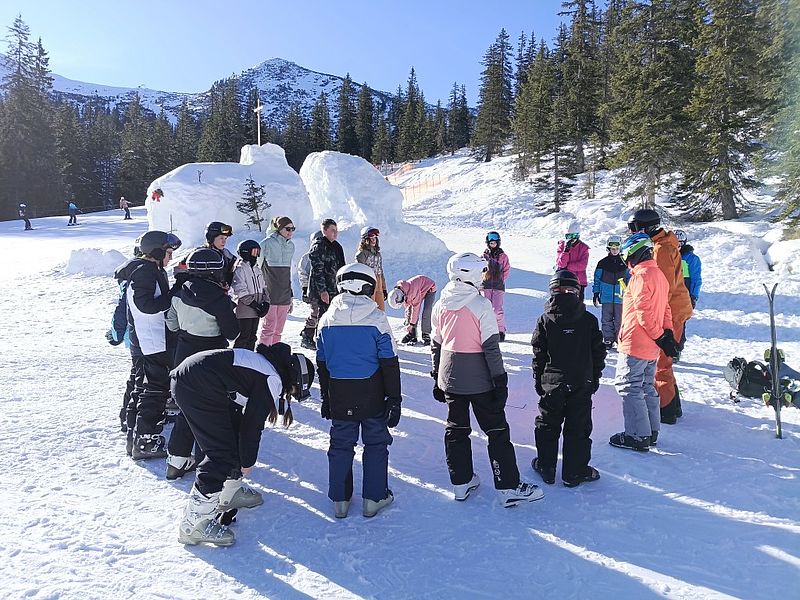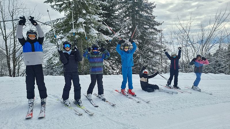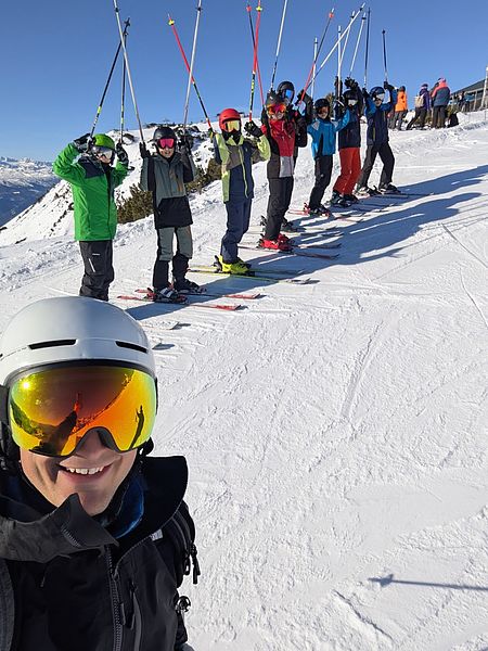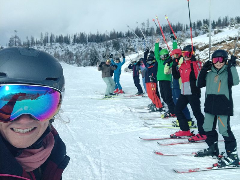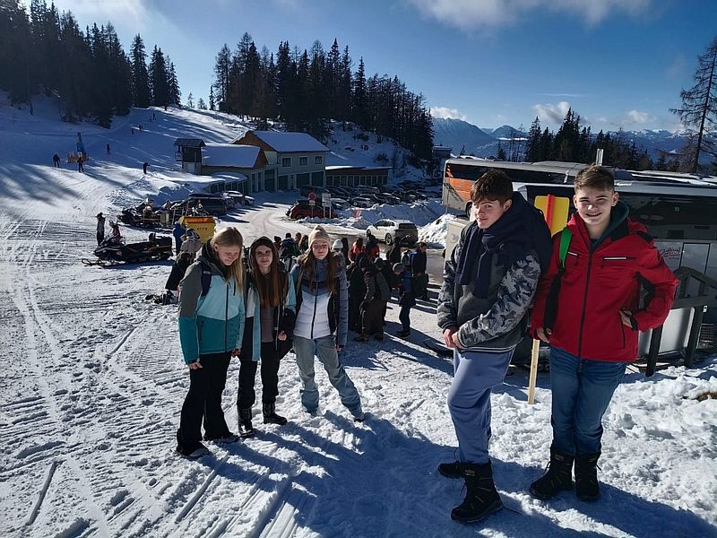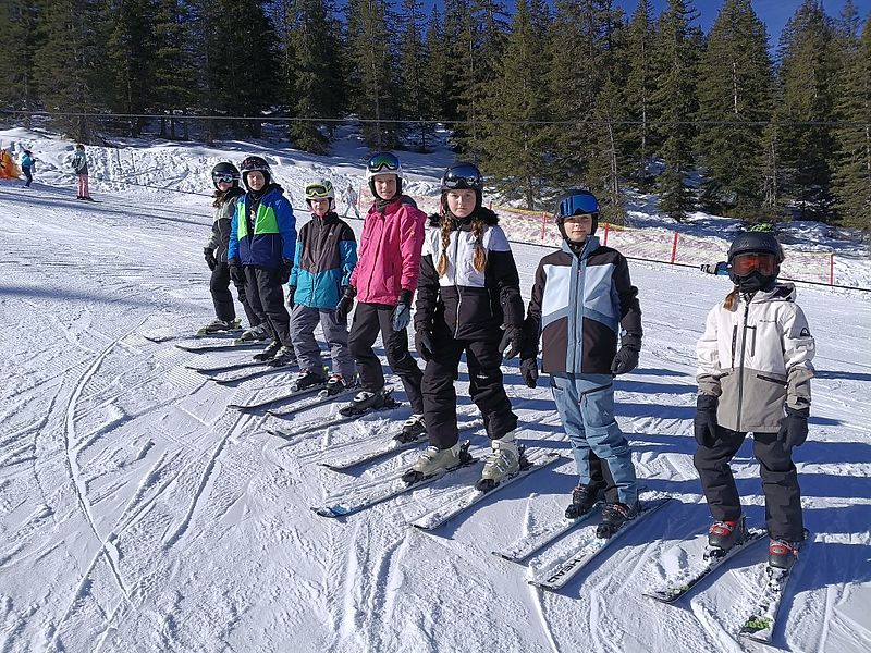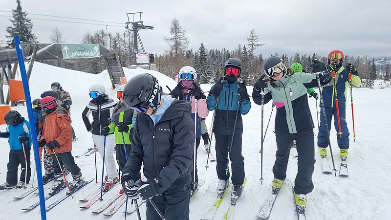 Begleitet wurden die jungen Wintersportler:innen von den Lehrkräften Klaus Anderle, Lena Gollowitsch, Matthias Stifter, Jaqueline Ebner sowie Nina Schlauer-Roskaric (Schulassistentin).