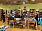 In der Direktion wurde der Bischof von unserer Schulsprecherin Nòra und dem Schulsprecher Marcel herzlich begrüßt. In der Bibliothek gab es dann Raum und Zeit mit dem Bischof ins Gespräch zu kommen.