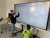 Von 07:55 bis 11:30 Uhr nutzten die Besucher:innen die Gelegenheit, im Rahmen eines Stationenbetriebs Einblicke in Räumlichkeiten, Unterrichtsangebote, Atmosphäre und Schulklima der Schule zu gewinnen. Die Stationen wurden von Lehrer:innen und Schüler:innen der Mittelschule betreut und begleitet, 17 Guides aus den 4. Klassen führten von Station zu Station. Die Kinder erlebten einen abwechslungsreichen Stationenbetrieb mit Angeboten aus den Bereichen Sport, Musik, Kreatives Gestalten (GTS), Chemie, Englisch, Theaterwerkstatt, digitales Experimentieren mit KI, Robotik, EH mit gesunder Jause sowie tiergestützter Pädagogik mit Therapiehund Angus.