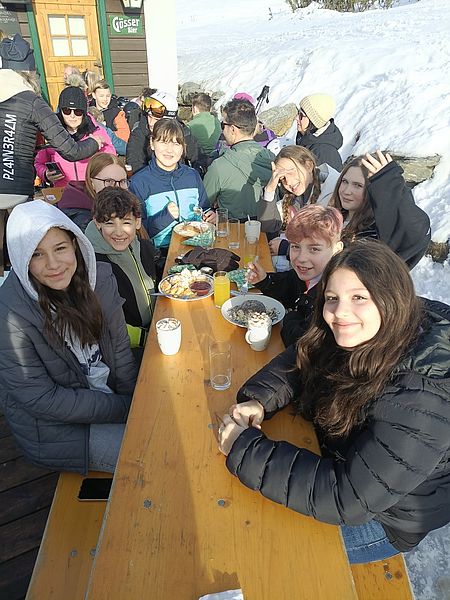 Die Schüler:innen der dritten Klassen absolvierten im Februar einen Schikurs auf der Planneralm - erwähnenswert war dabei, dass in dieser Woche ca. 20 Schüler:innen (Anfänger:innen) das Schifahren gelernt werden konnte. Neben dem Pistenspaß stand auch noch Rodeln und Kegeln auf dem Programm!